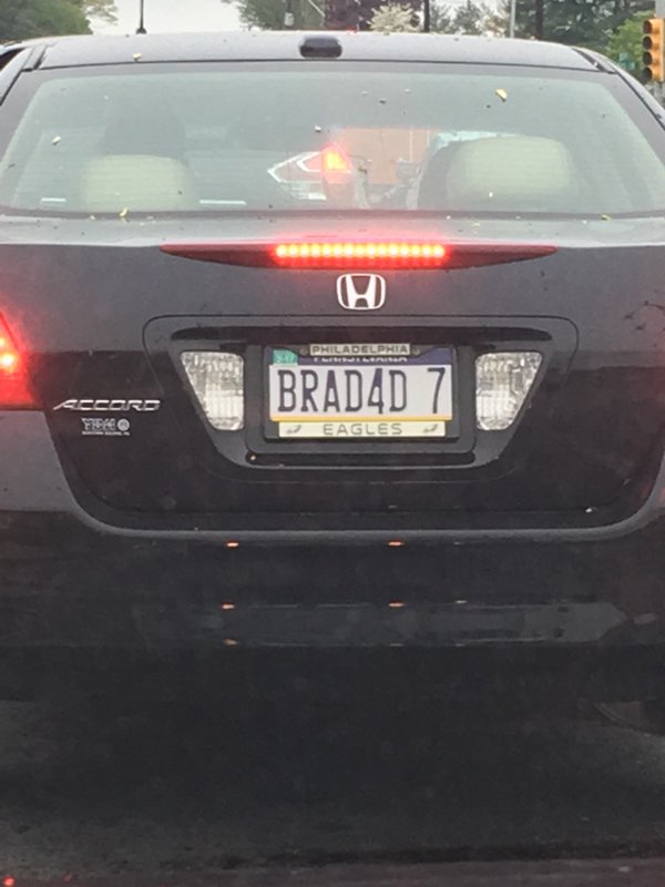 From a twitter egg reader, comes that not well-thought-out Sam Bradford vanity plate. Plus, it’s just kinda boring.