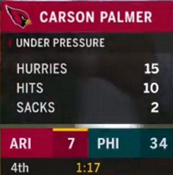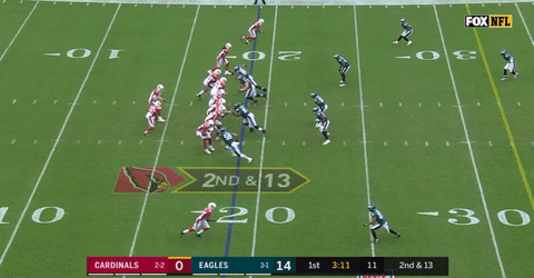Coming into the Cardinals game, the one thing we knew for sure about Palmer was that he’s good for at least a few of those ill-advised passes each week. Sunday was no different, but the Eagles couldn’t take advantage. By my count, Palmer threw five passes that could have been intercepted. Individually, each non-interception may have its own valid reasoning behind it, but, on the whole, the Eagles need to make more of these plays.