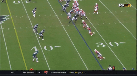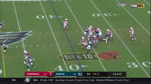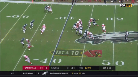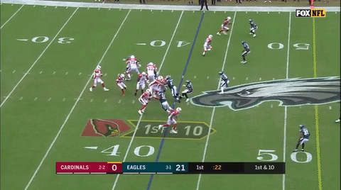 I don’t intend to rain on the Eagles’ parade at all. The win over the Cardinals was a great game all around, and the defense played great. The pass rush got consistent pressure on Carson Palmer and forced him into several poor throws. The secondary played well, didn’t really get beat deep and were doing a really nice job getting downhill and making tackles all game long.