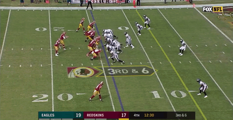 The Redskins had just driven the length of the field for the second straight drive. They trailed by two, but had the ball on the Eagles’ 14-yard line and all signs pointed to them taking the lead. Schwartz needed to do something as Cousins had been picking the defense apart and the Eagles’ pass rush was tiring. So, on third and 6, Schwartz unleashed a hellacious seven-man blitz: