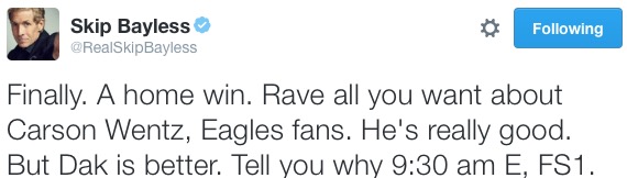 For real, though, I’m looking forward to years of showdowns between Wentz and Dak. Both of them could be something special.
