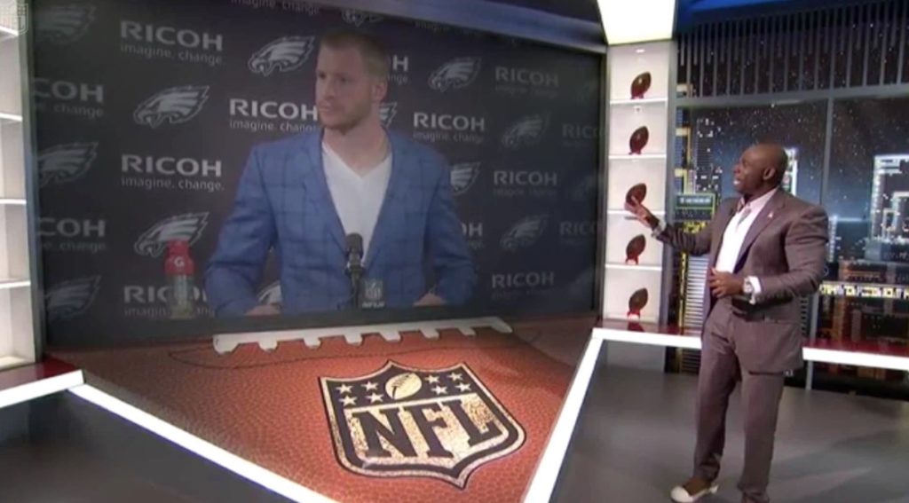 Do you need another reason to love Carson Wentz? Well! do I have one for you! It seems Carson was scheduled to appear on Deion Sanders’ show, but decided to cancel likely for one of any number of reasonable, um, reasons. Prime Time didn’t like being disrespected… so he decided to critique Carson’s wardrobe and take needless shots at him on TV: