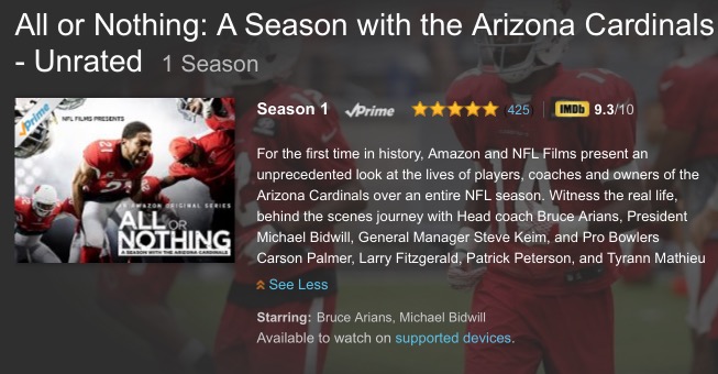 Viewing Recommendation: Amazon’s “All Or Nothing: A Season with the Arizona Cardinals”