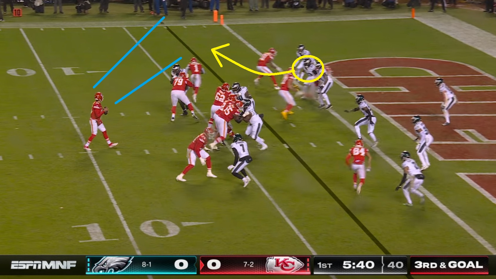 4) The most annoying part of the first Chiefs touchdown was that they tried to run their stupid fake motion from the Super Bowl, and the Eagles actually had it covered. Unfortunately the pass rush couldn’t get home, Mahomes squirted out of the pocket, and then found his receiver after Kevin Byard got totally lost. Frustrating, because they took away the first read: