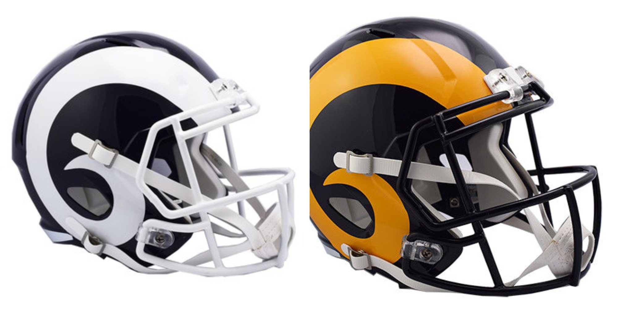 Teams, however, are allowed to change the decals on their helmets, which is why you see the Rams use both white and yellow horns: