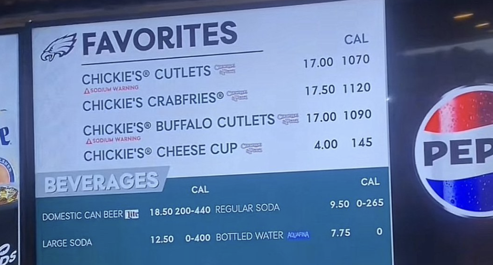 This picture has been floating around from, we think, The Weeknd’s recent concert at Lincoln Financial Field. It shows a screen with concession prices: