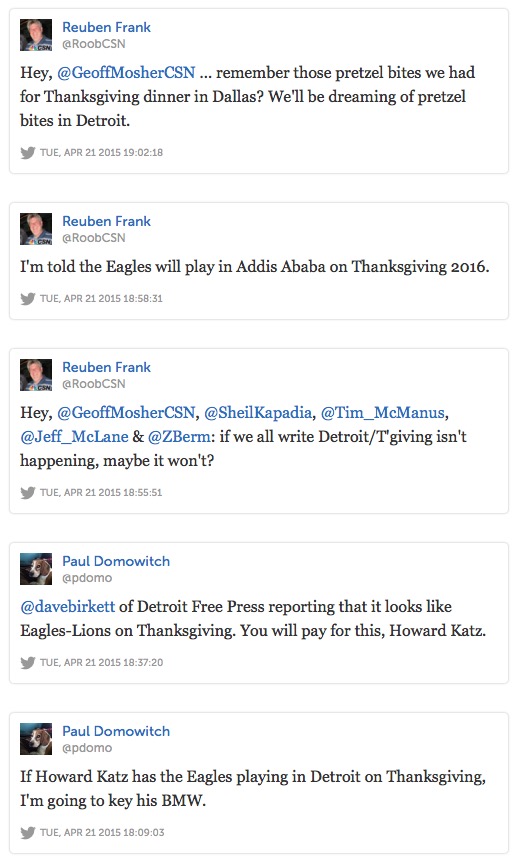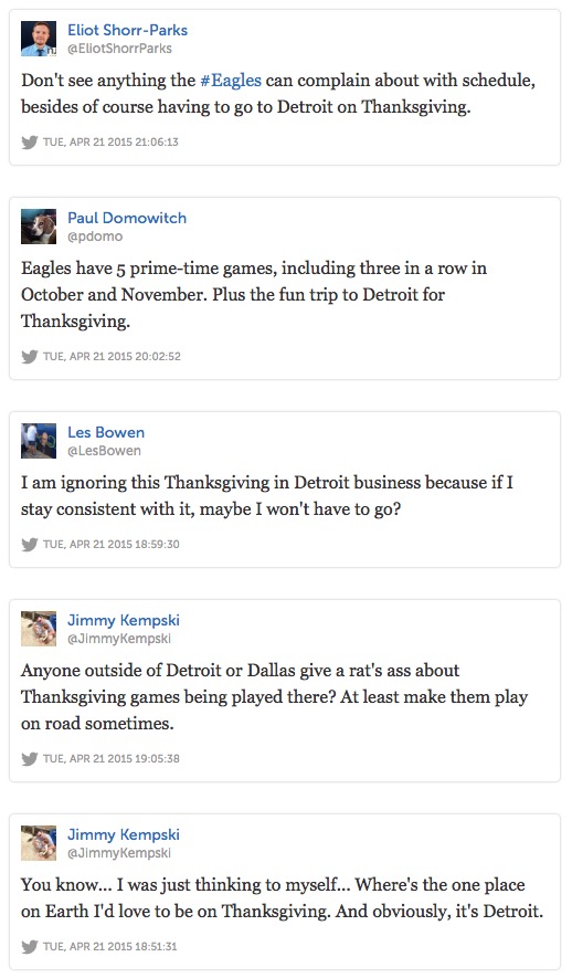 Yep, Eagles Writers Bitched about the Birds Playing in Detroit on Thanksgiving