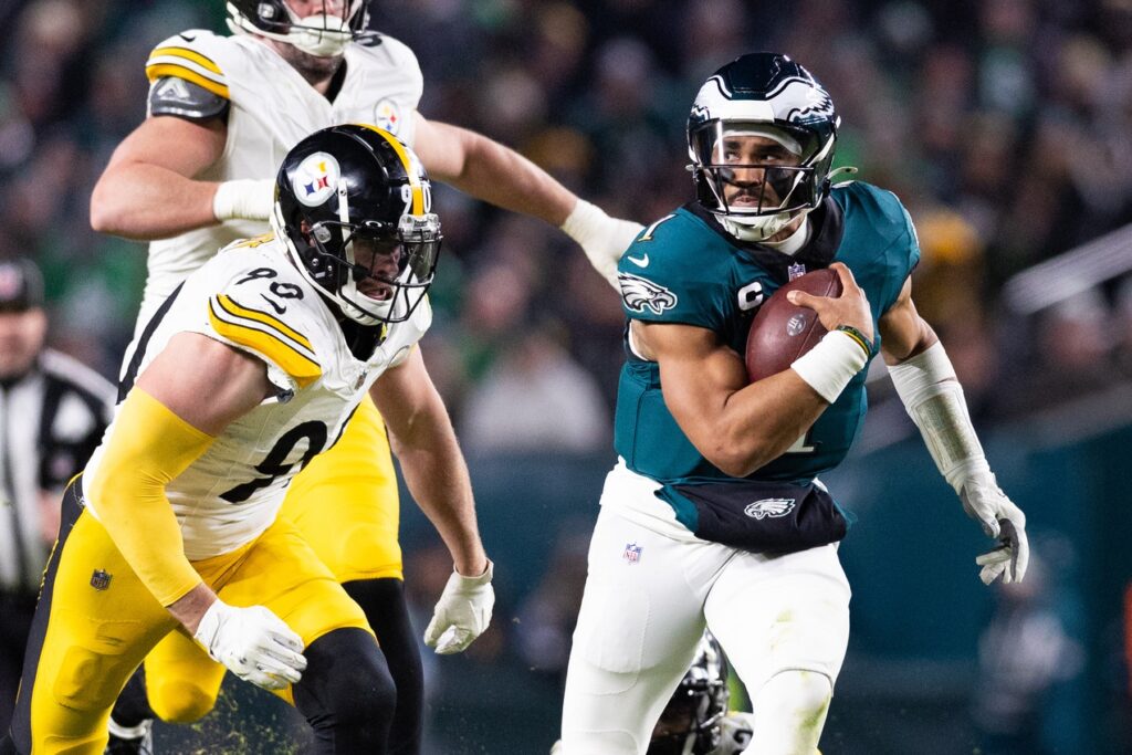 On the ensuing drive, down 27-13, you wonder if Mike Tomlin made a mistake punting from the Eagles’ 46 yard line. They downed it at the six and a series of Eagles penalties backed them up even further, to the point where the Steelers had 3rd and 6 and a chance to hold. It would have given them the ball back with good field position and about 9:30 on the clock. Instead, Jalen Hurts hit A.J. Brown for 21 yards and Russell Wilson never touched the ball again.