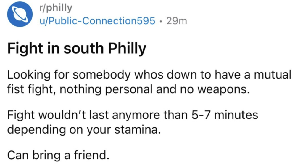 You Don’t Take Away Football and Not Expect Guys in South Philly to Start Setting Up Fights on Reddit