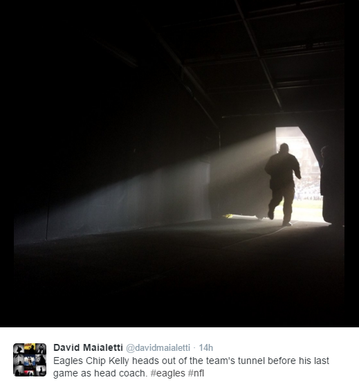 Blame the media for propping up Chip Kelly by Buzz Bissinger – Humility as always from Bissinger: “‘I’m two-for-two,’ Bissinger told Philly.com after it was announced that Kelly has lost his job as Eagles head coach. ‘I was right about Nick Foles, and I was right about Chip Kelly.'”