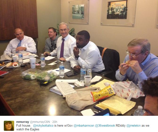 Game time snacks. Ray Diddy: Wawa. B-West: Salad. The Gov: IS THAT A WHOLE PIZZA?