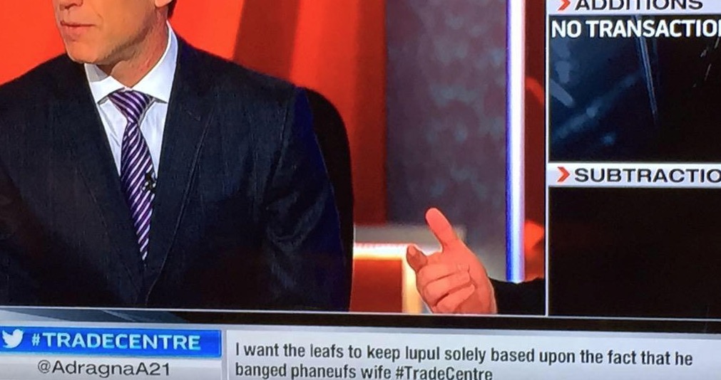 A Ridiculous Joffrey Lupul Tweet Has Made Its Way onto TSN’s #TradeCentre Coverage