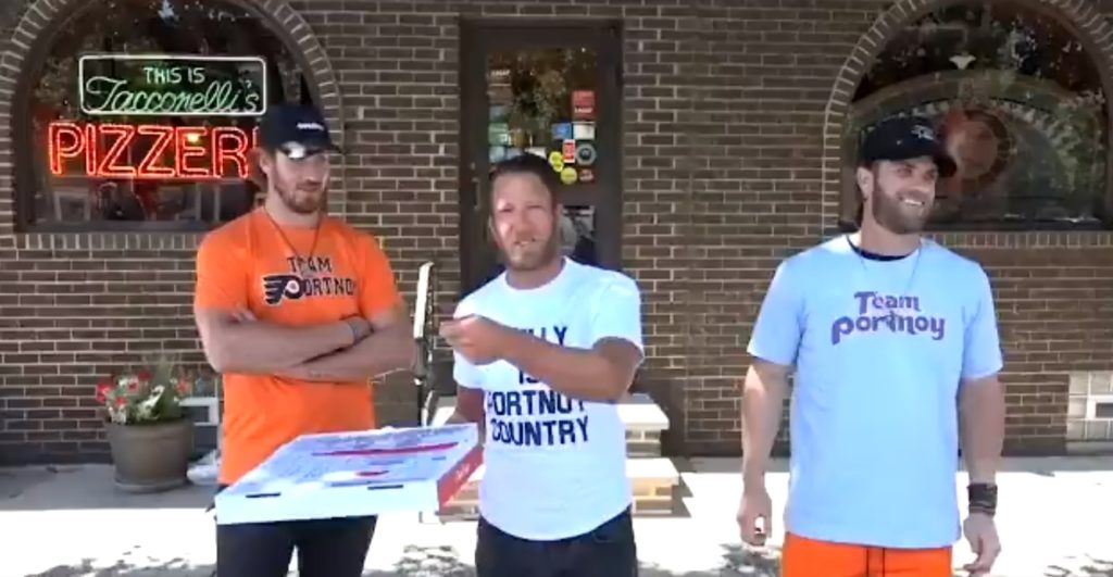 Barstool is big enough to get them to open the place on a Monday, and here’s Dave Portnoy with Kevin Hayes and Bryce Harper, reviewing one of Philadelphia’s more elusive pies: