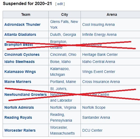 It would be a lot more complicated to move seven NHL teams to American cities. Not sure where you would place them. You could either double up on arenas in existing NHL cities, like Detroit and Chicago, or perhaps keep these clubs closer to the border and/or let them use minor league facilities instead. There a number of ECHL franchises that are currently suspended due to COVID-19 and are not playing, which means these arenas are not being used for hockey right now (via Wikipedia):