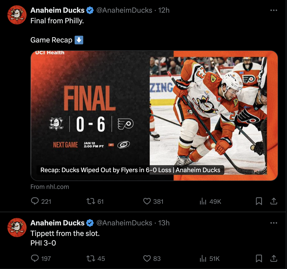 Six goals and Jamie Drysdale records two points. There’s not much more you could ask for. It got so out of hand the Ducks social team stopped tweeting after Owen Tippett made it 3-0: