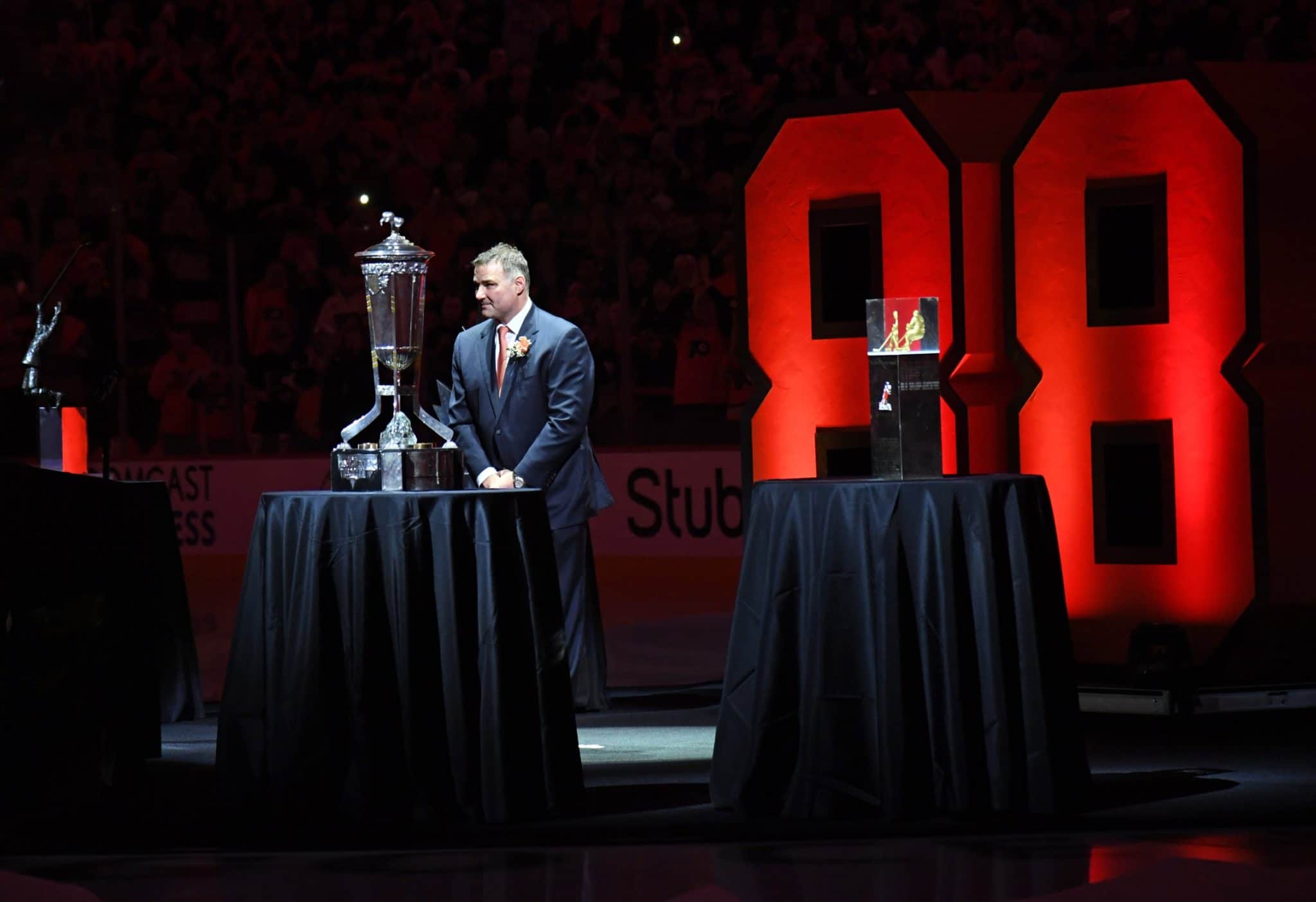 Eric Lindros at his 2018 number retirement – Eric Hartline/USA Today Sports