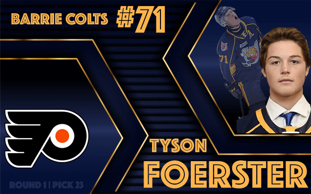 “With the 23rd selection in the 2020 NHL draft, the Philadelphia Flyers select, from Barrie, Tyson Foerster.”