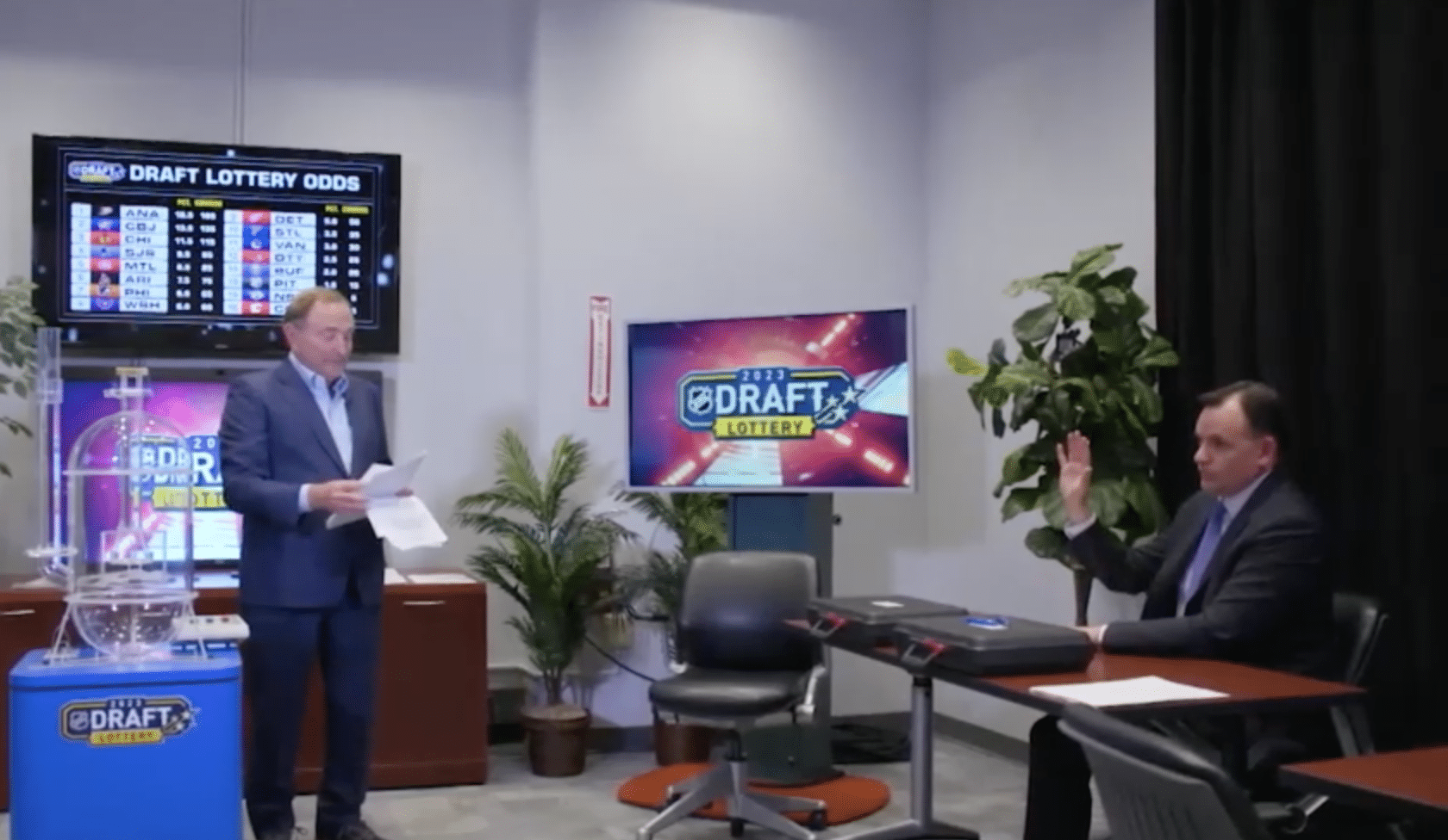 Here’s 16 minutes of the Gary Bettman doing the lottery drawing and it is a Zach Galifianakis away from being an episode of Between Two Ferns. I’ve seen studio apartments in NY with more square footage than this office. If you don’t feel like watching the full thing I’ll break it down for ya: