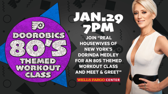 Yeah, no joke. The Comcast-Spectacor folks put together a “Doorobics” 80’s themed workout with the RHONY star: