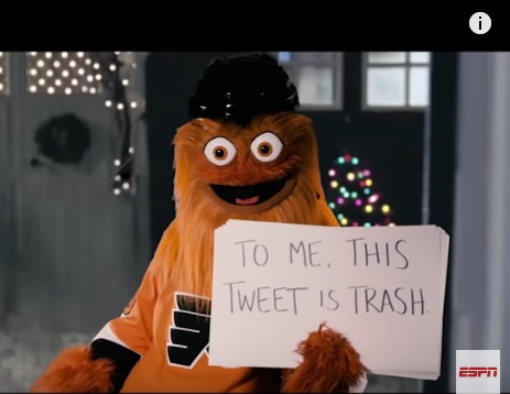 Since it’s 2018, ESPN’s Katie Nolan did a spoof with Antifa political icon Gritty, who also doubles as the Flyers mascot.
