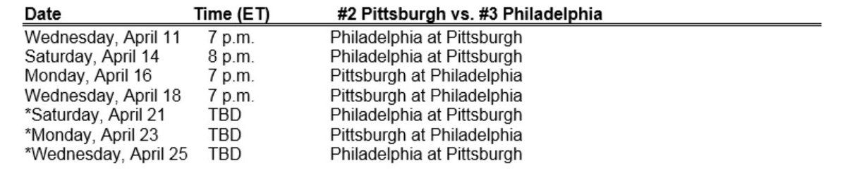 If the Bruins beat the Panthers, this would be the schedule for the Flyers-Penguins series: