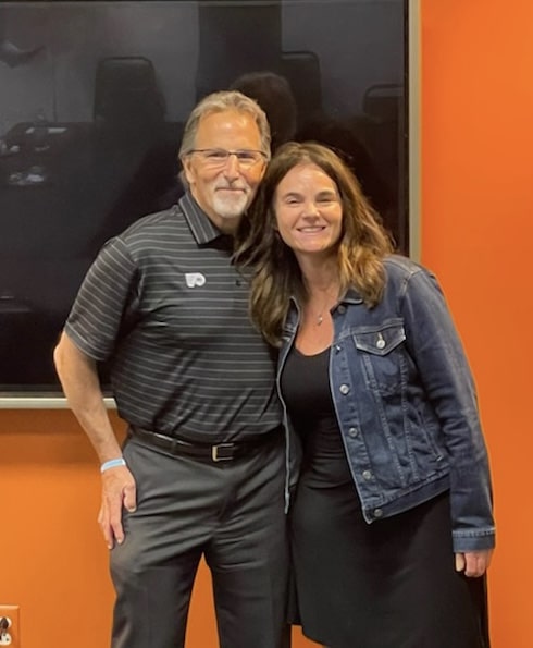 Jennifer Kaliser, one of the former season ticket holders, asked him about his animal welfare advocacy – something Torts has always been passionate about as part of his his Tortorella Family Foundation – and if he would bring his “Hockey and Hounds” program to Philadelphia, a weekly radio segment that he started when coaching in Columbus to talk about hockey but also create awareness for rescue animals.