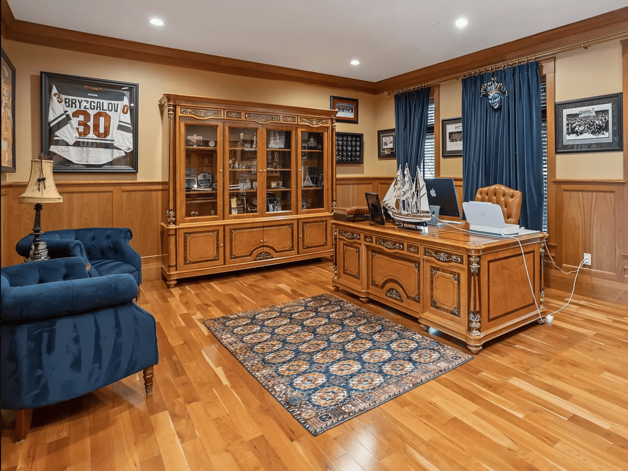 This is the most Russian house I’ve ever seen. There’s seven tons of stone in the living room, a giant chimney, and more worn-out brown leather than you see on the beaches of the Jersey shore. If you told me this was a nice vacation home outside of St. Petersburg I’d believe you. But not a $4 million dollar house near Philadelphia. If there’s not Soviet-era music playing throughout the house as you’re taking a tour, I’d be shocked.