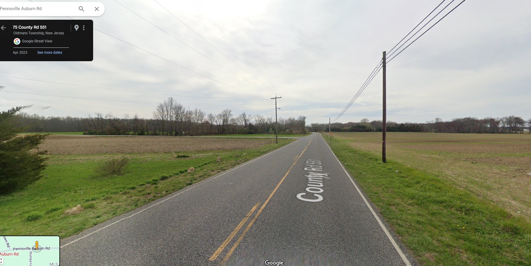 EDIT 3 – I pulled some screengrabs of the accident scene. Police reports say it happened near the intersection of 551 and Stumpy Road in Oldman’s Township, which is about halfway between Carney’s Point and Swedesboro: