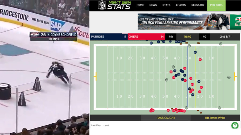 This is really, really cool. During tonight’s NHL All-Star Game and Sunday afternoon’s NFL Pro Bowl, all nine fans watching both games will be treated to data-tracking technology previously tested in restricted settings. The user experience will be drastically different in terms of presentation, however it’s worth taking advantage of the unprecedented access on a few levels. If you’re a fan of either sport, you’ll be treated to tracking data that’s been limited in scope (NFL) or has never been seen in any live setting (NHL). If you’re into sports betting, welcome to the advent of a new level of prop betting.