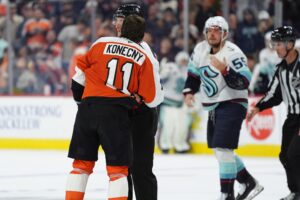 Flyers Flyers Vibes are High After a 5-2 Win and Travis Konecny Bloodying and Chirping an Ex-Ranger Kevin Kinkead • Oct 21st, 2025