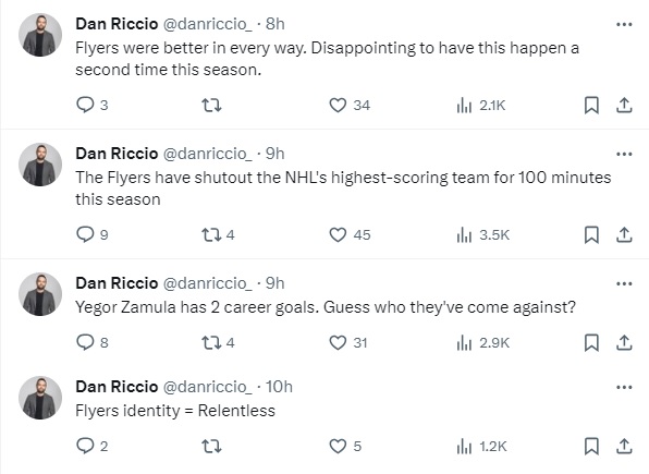 I used to do radio hits with Dan Riccio when Toronto FC was one of the teams he covered. Good dude. Now he’s working in Vancouver radio and was going through it while the Flyers were throttling the Pacific-leading Canucks on Thursday night: