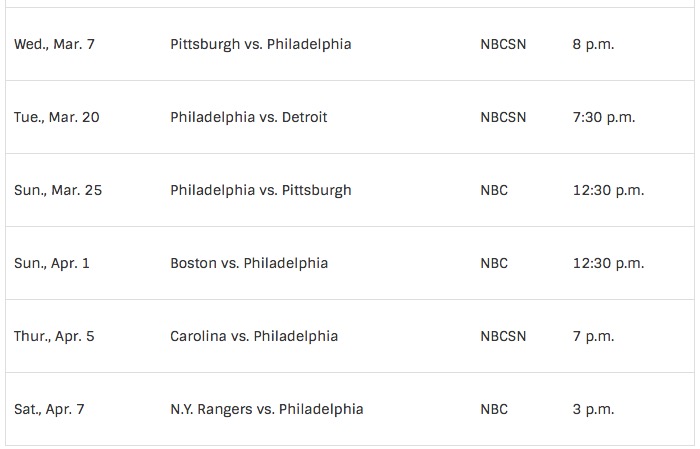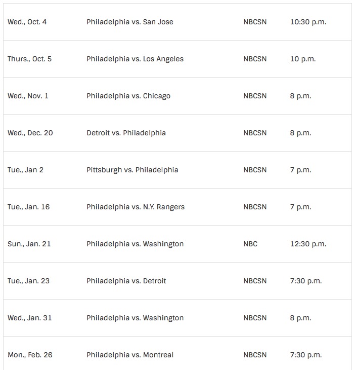 The National Hockey League and NBC today released the national television schedule for the 2017-18 NHL season. The Flyers are scheduled to play in front of a national audience 16 times this season, including four weekend games on NBC.