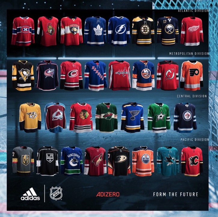 Adidas unveiled their new hockey jerseys last night, and proving that when the same parent company wins the bid to redo its own product, little will change. Looks familiar!
