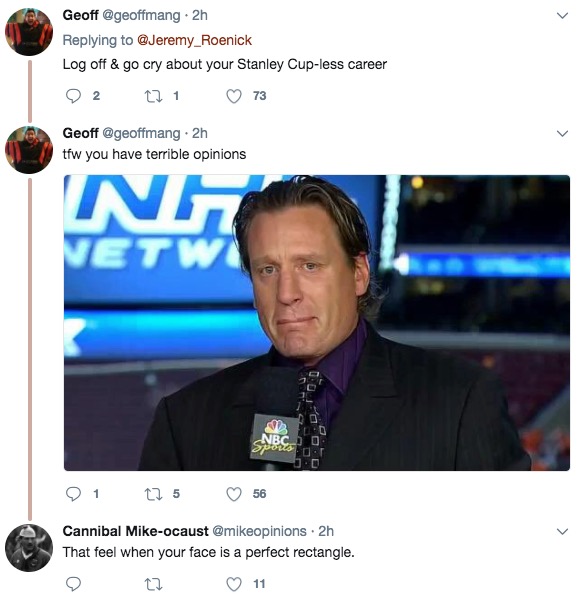 Jeremy Roenick and John LeClair have bravely waded into the fray of the Marshawn Lynch debate. Let’s check and see how the comments are going?