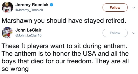 Jeremy Roenick and John LeClair have bravely waded into the fray of the Marshawn Lynch debate. Let’s check and see how the comments are going?