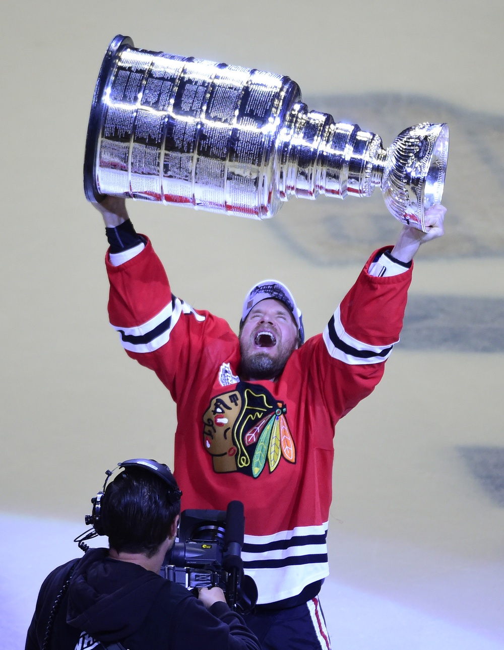 After his team’s electric 2-0 title-clinching win over Tampa Bay on Monday night, Blackhawks captain Jonathan Toews could have handed the Stanley Cup to one of the many of his long-time teammates. Instead, in a moment that oozed of class, he gave the famous trophy to a player who had played for Chicago for all of four months.