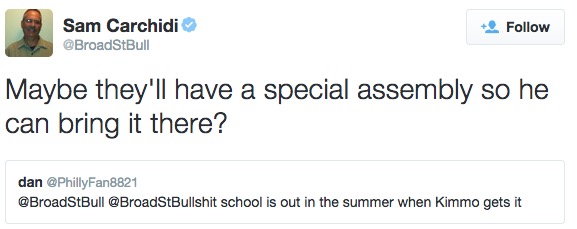 I’m embarrassed for us. I’m embarrassed to be part of a fan base that celebrates mediocrity like this. A fan base that somehow, whether due to the heat of the moment or not, openly posits that the Flyers’ season was a success because a former solid, steady player got to go elsewhere and make himself a footnote in their dynasty. Embarrassed to be from a city where the collective mindset just accepts this sort of also-ran consolation prize. Don’t get me wrong, I’m happy for Kimmo. But  I can’t take this shit. New year, same lukewarm story about a “local” guy doing his thing elsewhere. Hey, Bradley Cooper mentioned us in US! Did you hear Taylor Swift say she was from Reading on Saturday night?! Totes cool to see a Philly girl doing her thing on a national stage. She loves us so much. <3 Mike Trout– South Jersey, woot woot! We need to have higher standards. This is why New Yorkers, Bostonians, Chicagoans, San Franciscans, and Los Angelons (word?) laugh at us. Those cities have sports success. They have big, innovative business. They have celebrities (and presidents!). Meanwhile, we play the Kevin Bacon game of achievement, always two hops away from being in the movie ourselves. We celebrate this stuff like somehow it reflects positively on us, like we had something to do with it. Look at this– it’s gross:Voila_Capture 2015-06-16_10-31-10_AM Voila_Capture 2015-06-16_10-31-01_AM Voila_Capture 2015-06-16_10-30-33_AM