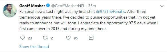 Geoff Mosher is Leaving 97.5 the Fanatic
