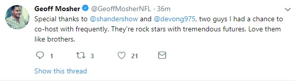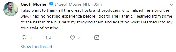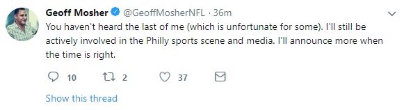 I wonder what he ends up doing. Geoff covered the Eagles for years at the Delaware News Journal, ended up at CSN Philly, and left the station a few years back, right before all of the cuts and programming changes started happening. Maybe he got out at the right time.