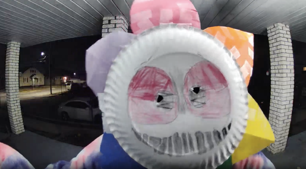 I’m drawing my line in the sand right now. I’m not messing with the Box Demon. What is the Box Demon? Someone is dressing up in a paper plate flower mask and leaving an empty box on your doorstep. Then it announces itself in your Ring doorbell. “I am the box demon. I leave this gift, this box, for you…” Look how creepy this thing is: