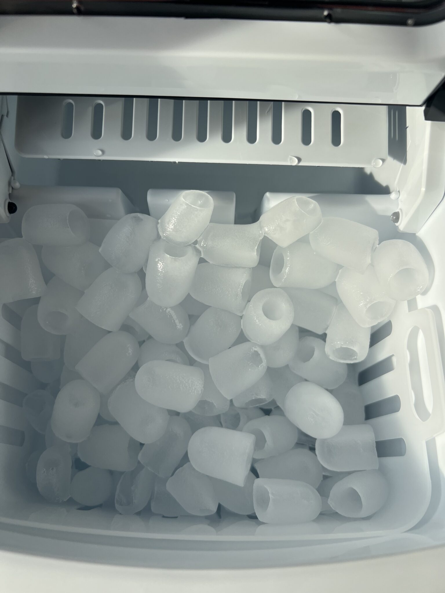 - Hooked up an ice machine. Actually my fiance did. We haven’t had ice in our freezer for almost six months and the repair man has been here like five times trying to fix it with the same results every time. It’s ridiculous and my building refuses to replace the fridge. So my property manager dropped off an ice machine. And you know what…it’s cool as hell. Look at these ice cubes! They look like those eraser heads you used to put on top of pencils: