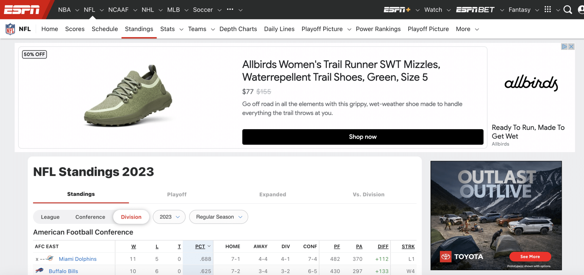 I’m looking at NFL standings on https://t.co/mwKPcWYZM0. This is the ad running above the standings. How is this possible? Appropriate? pic.twitter.com/GlMtT3VY1f