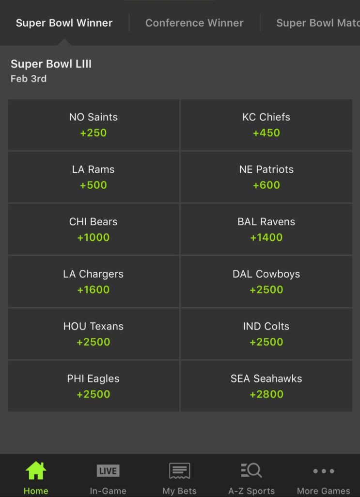 If you had a sense of foreboding that you’d get poor value for your wager, fear not: the oddsmakers have listed the Eagles as… UNDERDOGS. In fact, DraftKings Sportsbook, FanDuel Sportsbook, and BetStars have all installed the Eagles as the least-likely team to prevail in Super Bowl LIII. Let’s take a look at those three sportsbooks and what it means for your bottom line: