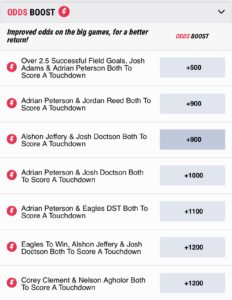 [INSERT_ELEMENTOR id=”86261″]So where’s the value? As of this morning, those looking to take the Eagles against the spread should head to SugarHouseSportsbook and grab them at -6 (-107). Those that like the Redskins can get them for the optimal price at SugarHouse at +6 (-107). Moneyline bettors on Philadelphia can get them at FanDuel Sportsbook for -240, while SugarHouse offers the best payout on Washington at +215. Totals bettors on the under should grab it at 45.5 (-108) with SugarHouse, while those on the over can get 45 (-110) at FanDuel.