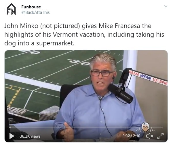 If you’re a Twitter user, you’re probably familiar with the account “Funhouse” (@BackAftaThis), which follows WFAN’s Mike Francesa and other radio personalities and shares video clips and audio clips from their shows. The account has close to 100,000 followers and is active on a daily basis.