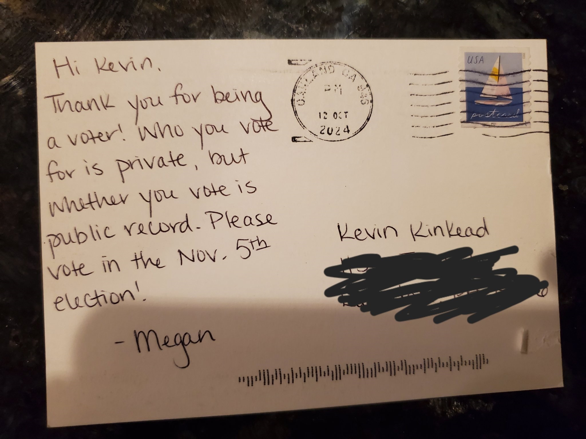 “Megan,” or whomever this person is, can go pound sand. Come say it to my face, MEGAN. The postcard links to Pennsylvania’s voter information page, but it was mailed from Oakland, so I’m gonna go ahead and assume they want me to vote for Kamala, since the Bay Area isn’t exactly Trump country. Remember, when people tell you it’s your responsibility to vote, what they really mean is that it’s your responsibility to vote for their candidate. Before we know it, they’re gonna bring back Puff Daddy for a “vote or die” reprise.