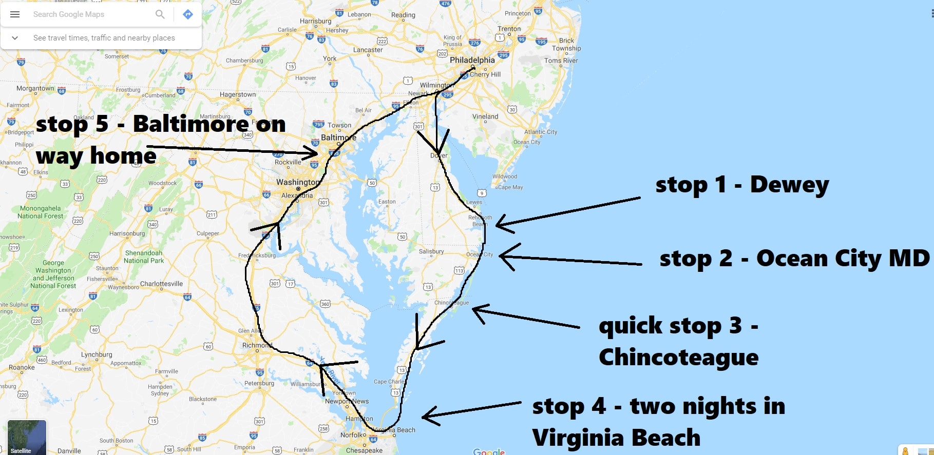 Fun ride. We spent a night in Dewey, then stopped in Ocean City and Chincoteague on day two. Didn’t see any horses though, which was lame. Then we went over the crazy long bridge from the peninsula into Virginia Beach, spent two nights there, then made a pit stop in Baltimore on the way home, for crabcakes and football.