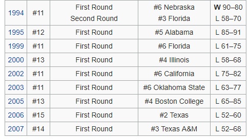 Penn was a 13 win team last season and major, major props are due to head coach Steve Donahue for the turnaround. This will be the Quakers’ first tournament appearance since 2007, and they’ll look to win their first March Madness game dating back to 1994, when they knocked off Nebraska in an 11/6 upset:
