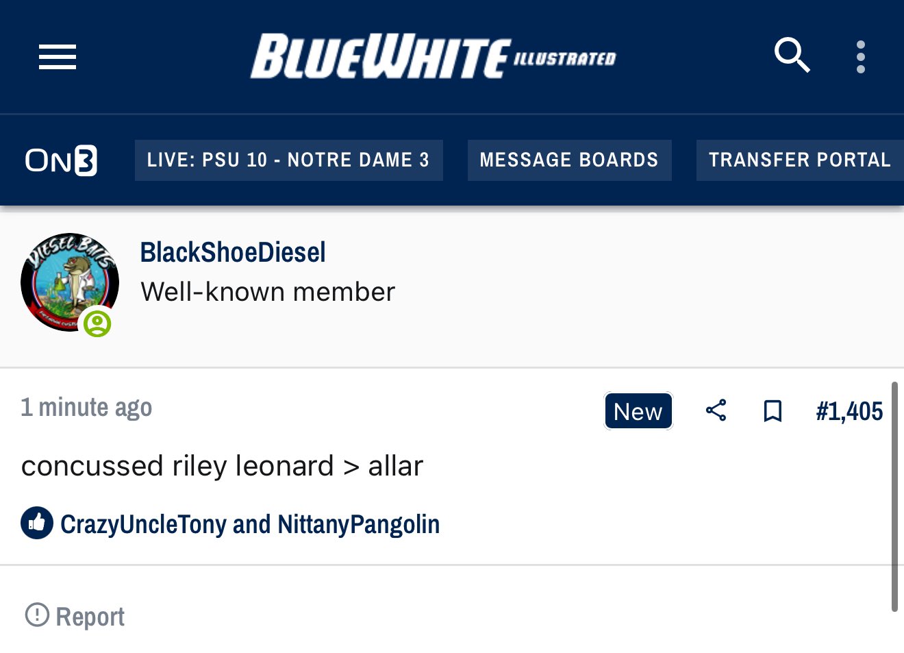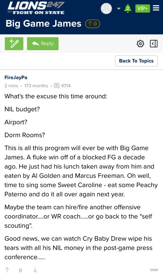 Luckily for me I got my pound of flesh. You couldn’t write a better script than how that played out. Let the Nits get up 10-zip, have Notre Dame make it a game, watch PSU fans start to convince themselves they’re going to get the monkey off their back just for Drew Allar to complete his first pass to someone other than a tight end… except that guy had a golden dome on. CINEMA! Your tears of unfathomable sadness. They are delicious! Luckily for me, when Al Gore’s Internet was created, so was the message board for every middle-aged man to release gigabytes of pent up frustration a therapist just isn’t qualified enough to handle. Like this guy who is questioning his entire existence: