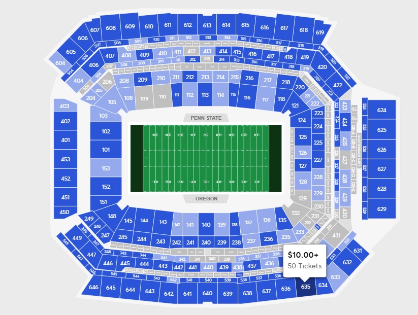 24 hours until the Big 10 championship game between Penn State and Oregon and the get-in price is 10 bucks: